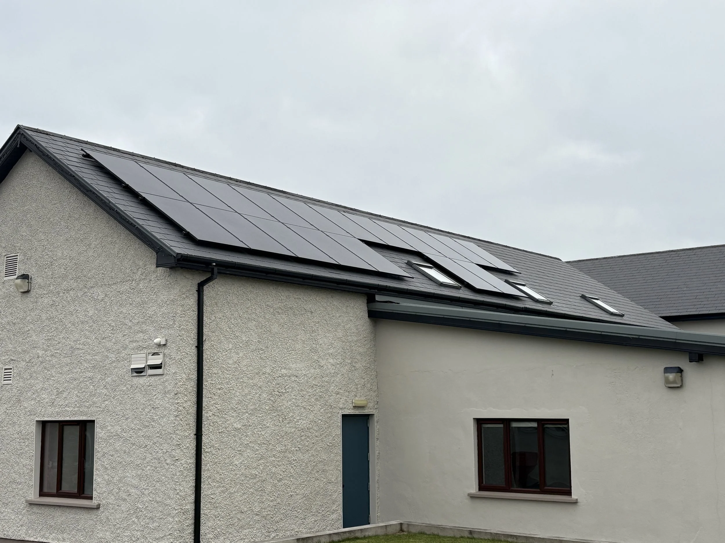 Recently there were 18 panels installed by EGR on a south facing roof at the rear of the hall. Itβs a 8kW system, and weβre hoping to avoid 2tons of CO2 per year. The project was supported by the Community Centre Investment Fund from the Department of Rural and Community Development and the Gaeltacht.
